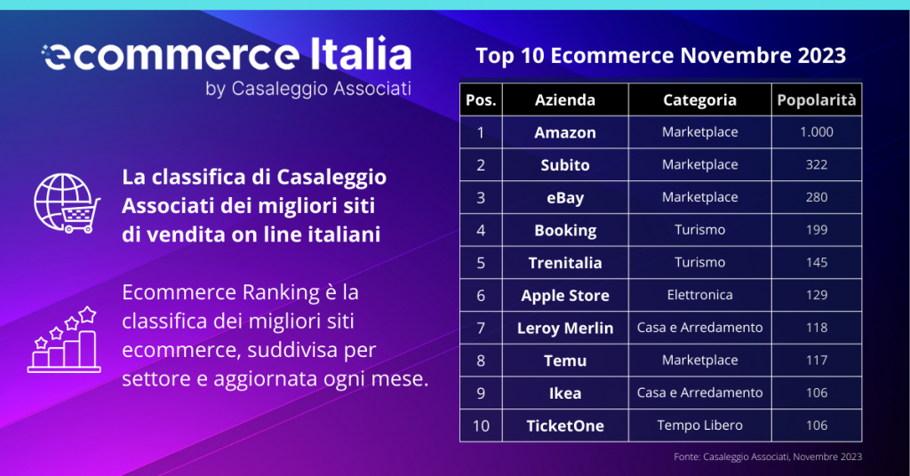 La classifica completa aggiornata a Novembre 2023 è visibile nella sezione Classifica di Ecommerce Italia:
