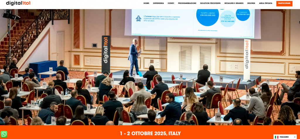 Digital1to1 si terrà l’1-2 ottobre ed ospiterà oltre 250 professionisti. Si tratta di un convegno multisettoriale, saranno compresi tutti i settori verticali dell’industria del commercio digitale.