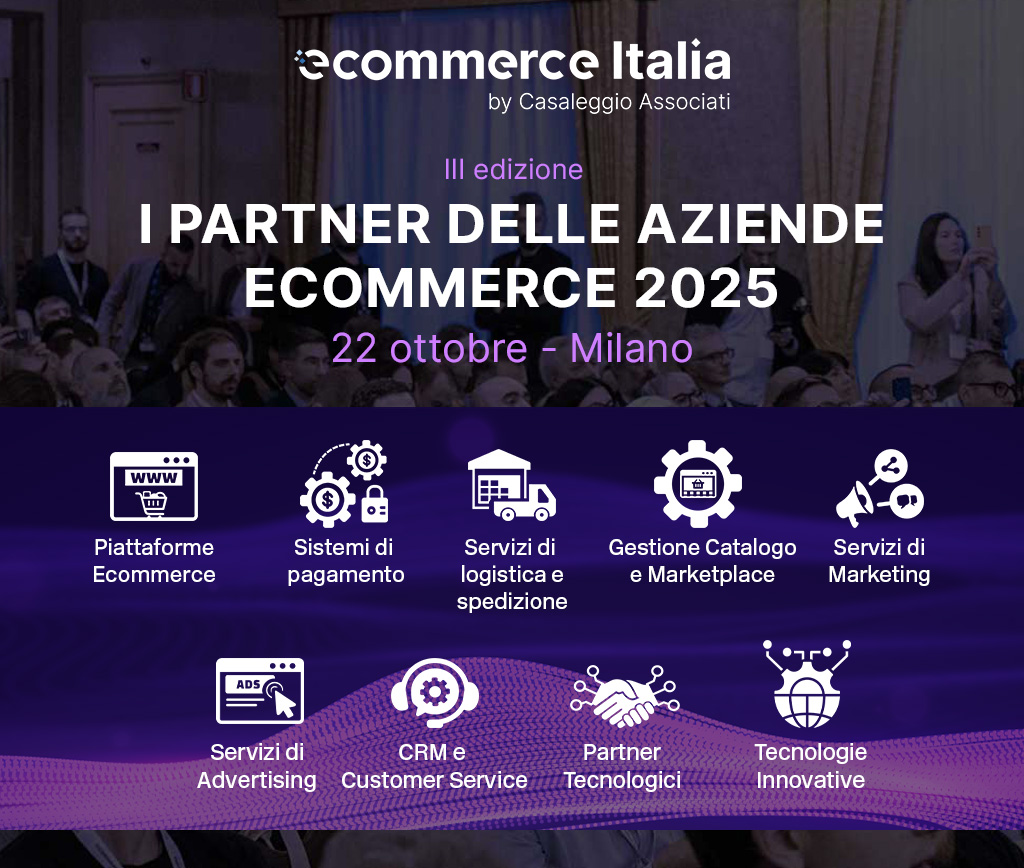 La 3° edizione della ricerca “I partner delle aziende Ecommerce” di Casaleggio Associati si terrà il 22 Ottobre 2025 ed ha l’obiettivo di descrivere lo stato dell’arte delle tecnologie e dei servizi per il mondo Ecommerce, analizzare i criteri di scelta delle imprese e valutare le prospettive evolutive. Attraverso l’analisi del mercato, interviste, survey e l’individuazione dei principali vendor presenti, sarà creata una mappa delle soluzioni disponibili, fornendo alle aziende una guida nella scelta delle soluzioni più adatte alle loro specifiche esigenze.