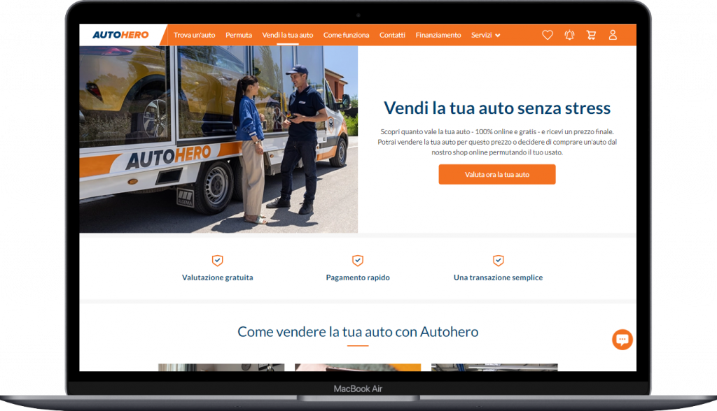 🥈 Al secondo posto Autohero un portale innovativo che rende il processo di acquisto e vendita di auto usate semplice e trasparente. Autohero offre un servizio di valutazione dell’auto, aiutando i venditori a ottenere un prezzo equo; propone un’ampia selezione di auto usate, gli acquirenti possono scegliere tra una vasta gamma di veicoli usati, tutti certificati e controllati; e garantisce servizi di permuta e vendita, facilitando la permuta di veicoli e la vendita diretta, offrendo soluzioni convenienti e rapide per i clienti.